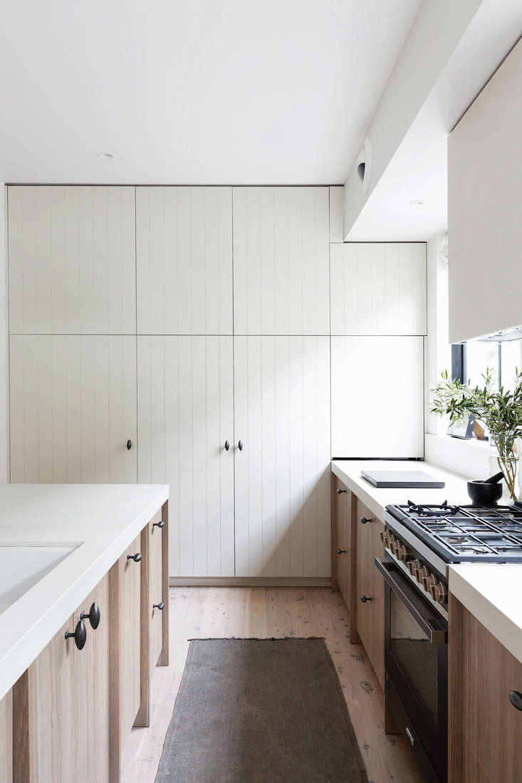 My favourite joinery pieces in the house are the hallway cupboard and the kitchen. The hallway cupboard features a curve that harmoniously plays with the arches in a simple hallway. It just works so well. The kitchen is a masterpiece with all its clever features, like touch sensor bins and an incredible pantry with custom spice racks. It perfectly meets the brief of combining function and aesthetics.
